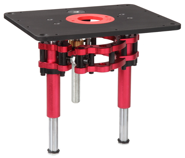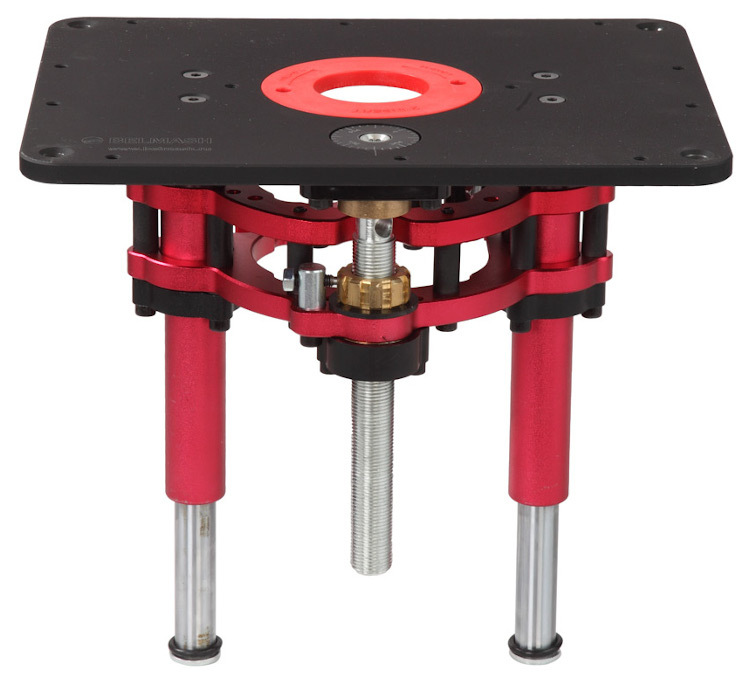 Изделие подходит для фрезерных столов с отверстием под фрезерный лифт размером 298,5×235 мм. Возможна установка фрезерных двигателей с установочным диаметром от 98 до 107 мм.