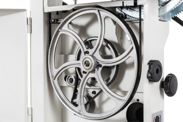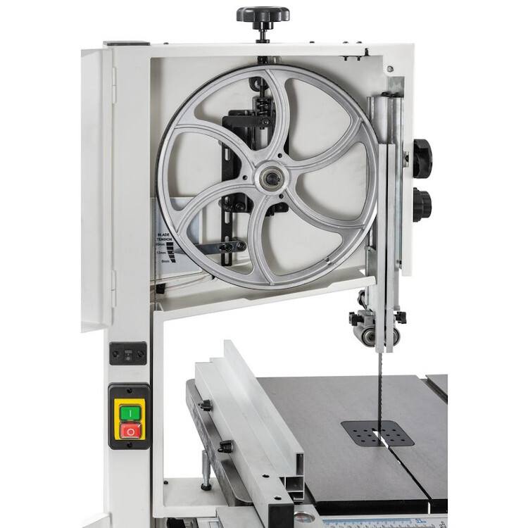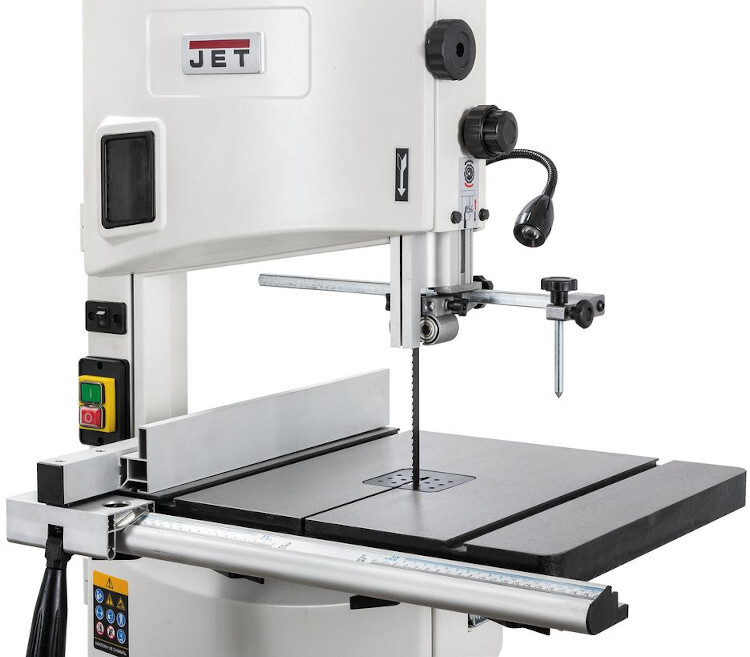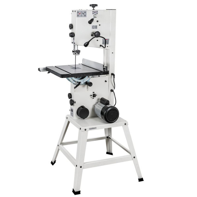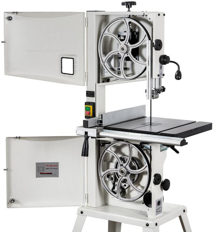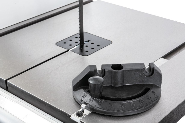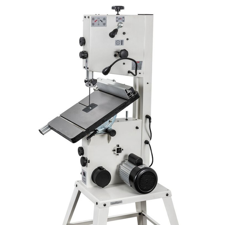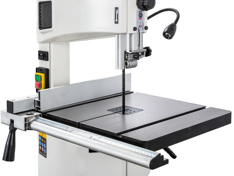 Данная модель имеет максимальное для своего класса оснащение и, кроме привычных «обязательных» функций и настроек, у нее есть и все вспомогательные. Среди них рычаг для быстрого ослабления и натяжения полотна, позволяющий одним движением переводить станок из состояния хранения в рабочее. Светодиодная подсветка рабочей области с гибким штативом. Патрубок аспирации со ступенчатым подключением шланга диаметром 50, 75 или 100 мм. Опорная подставка, которая может быть снята в случае настольного размещения