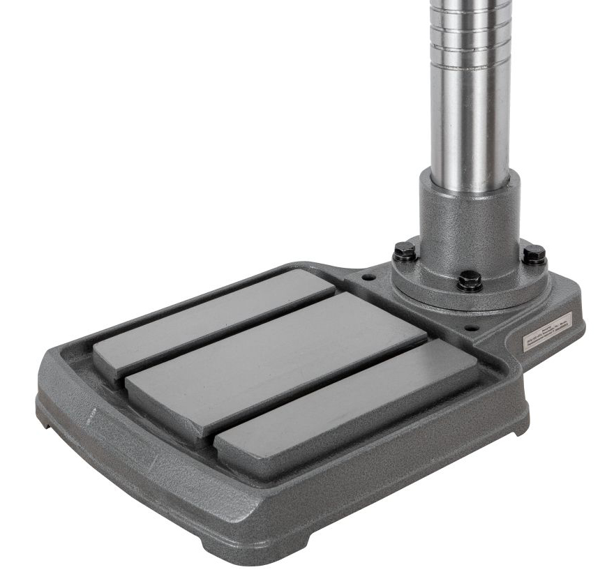 Станок имеет устойчивое чугунное основание размером 490 x 310 мм, с рабочей поверхностью стола 238 х 240 мм, на которой предусмотрены 2-Т образных паза с шириной 14 мм, для установки тисков или других зажимных приспособлениями. Расстояние между пазами 120 мм. На основание установлена колонна диаметром 70 мм с винтовой канавкой для возможности перемещения сверлильной головы по вертикали. Максимальное расстояние между шпинделем и столом-основанием, составляет 540 мм.