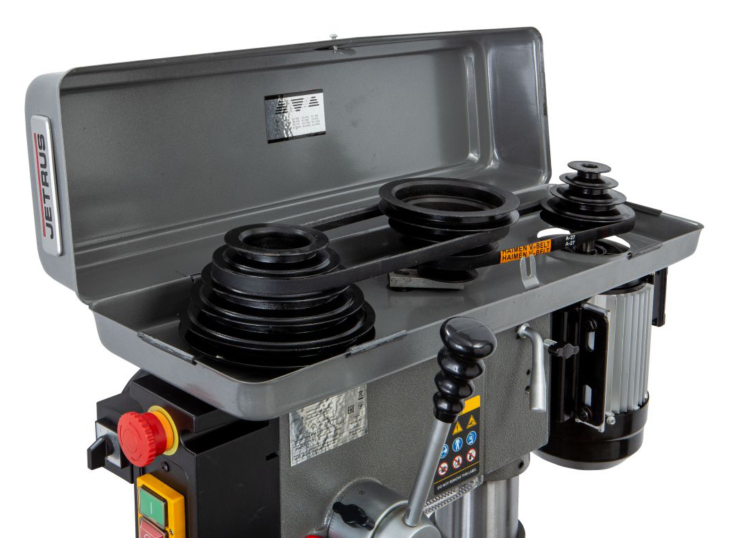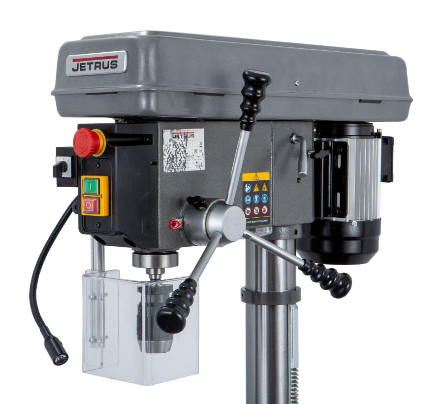 JETRUS JDP-17L вертикально-сверлильный станок, промышленной серии, напольного исполнения, с подключением к сети в 220 или 400 вольт. Благодаря высокому качеству исполнения деталей и механизмов, станок отличается хорошими показателями точности и долговечности и может применятся для серийного изготовления деталей.