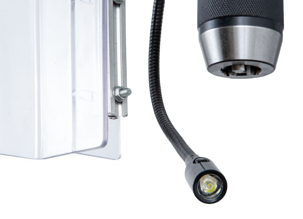 Станок оснащен лампой местного освещения с гибким держателем, который обеспечит удобное размещение и направление света в зону резания.