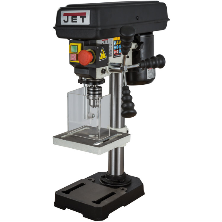 JET JDP-8BM - настольный сверлильный станок компактного класса. Подойдет на роль универсального в случае бытового использования или для сверления небольших диаметров при профессиональной эксплуатации. Конструкция относительно проста, но выполнена добротно и содержит все необходимое для точной и уверенной работы. Двигатель рассчитан на режим S1, что означает отсутствие существенного нагрева при номинальной мощности даже в течение длительных нагрузочных циклов. Редуктор имеет два ступенчатых пятиручейковых шкива для переустановки ремня, что позволяет выбрать оптимальную скорость и обеспечить необходимый вращающий момент