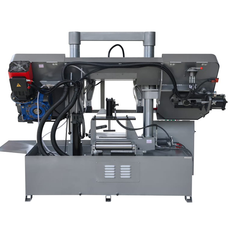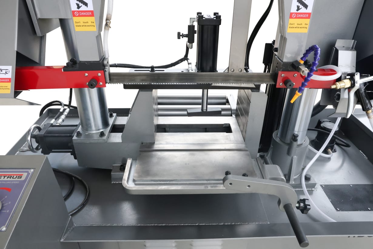 Станок оснащен гидравлической системой подъема и опускания пильной рамы с плавной регулировкой скорости подачи с пульта оператора для выбора оптимального режима резания. По окончании пиления, концевой выключатель останавливает движение ленточного полотна, пильная рама поднимается в исходное положение для осуществления циклических операций.
