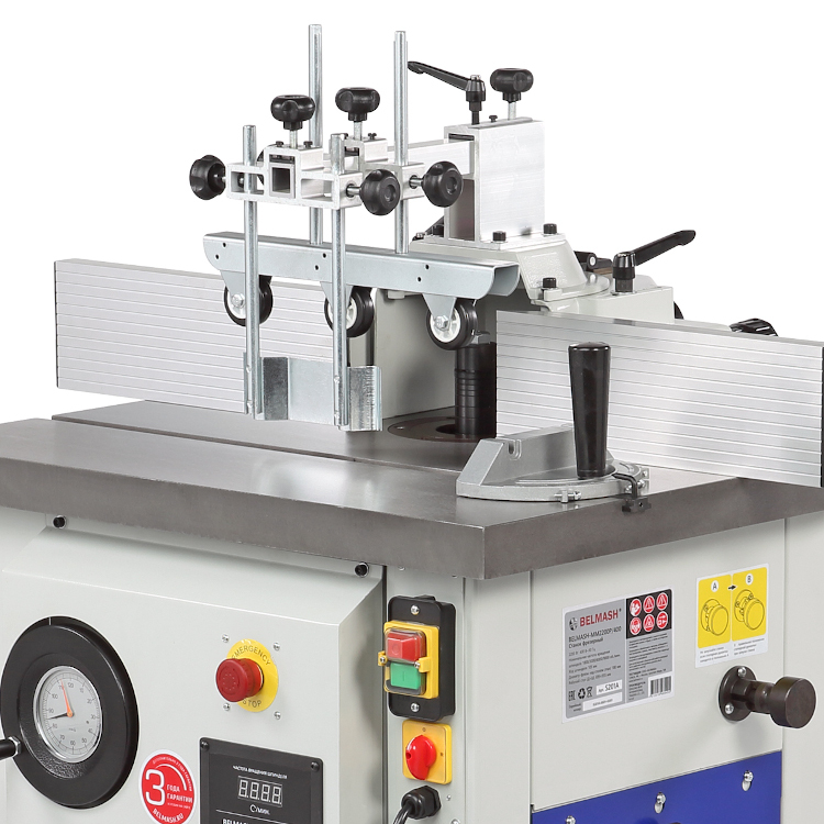 Станок фрезерный Белмаш MM2200P предназначен для обработки древесины (цельного дерева, фанеры, ДВП, МДФ, ДСП, ОСП и т.п.) фрезерованием с целью придания им необходимых форм и размеров, с ручной подачей заготовки. При соответствующей наладке на станке можно выполнять следующие виды работ: формирование лицевой стороны обшивочной доски; подготовка профильной и боковой обработки плинтуса, паркетной доски и т.п.; изготовление обвязки дверей, фасада корпусной мебели и оконных блоков; выполнение декоративной резьбы, сверление отверстий, выборка пазов. Станок оснащен чугунным рабочим столом с пазом для установки углового упора или дополнительных приспособлений. Корпус изделия закрытый, изготовлен из листовой стали. Защитный кожух с патрубком для отвода стружки расположен на задней части параллельного упора. Станок оснащен прижимным узлом, который помогает в подаче заготовки к режущему инструменту и осуществляет дополнительную фиксацию. В базовый комплект входят: шпиндель 30 мм; патрон зажимной с тремя цангами 8, 12, 12,7 мм; наборные кольца.