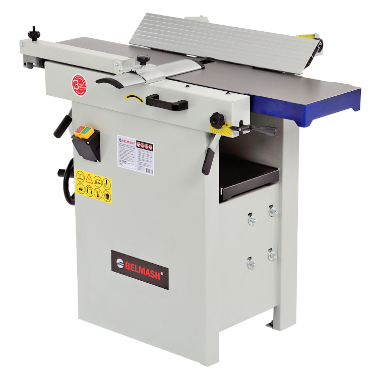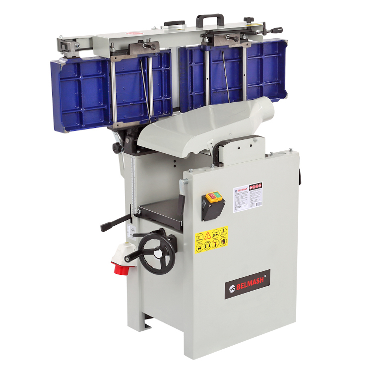Станок фуговально-рейсмусовый Белмаш JT-2 260/225-380 предназначен для фугования и рейсмусования, данное оборудование идеально подходит и совмещает в себе все операции для калибровки доски. ширина обработки составляет 260 мм - это значение достаточно велико по меркам профессиональных рейсмусовых станков, а по меркам фуговальных - и вовсе характерно для оборудования более высокого индустриального класса. Мощность трехфазного электродвигателя составляет 2200 Вт. Такое сочетание характеристик делает модель привлекательной не только с точки зрения экономии рабочего пространства, но и возможности выполнения серьезных задач. Вилка (тип 515) для подключения к сети 400 (380) Вольт расположена на корпусе станка. Конструкция станка – одна из самых удачных на рынке: широкое использование массивных чугунных деталей и большой вес гарантирует точную работу без вибраций. При рейсмусовании верхний модуль целиком поднимается и не мешает ни работе, ни стружкоудалению.