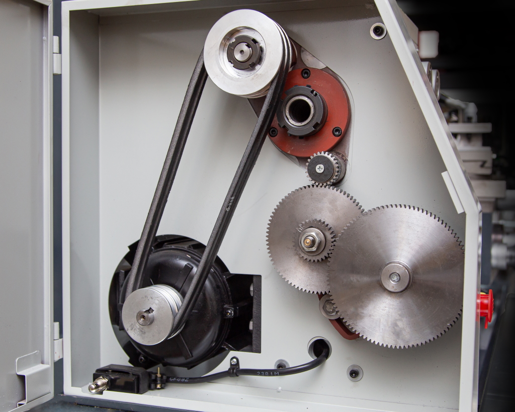 - Наличие металлических шестерней обладающих высоким ресурсом и повышенной износостойкостью, а наличие клиновидного ремня позволит избежать повреждения двигателя при превышении нагрузки на шпиндель